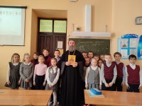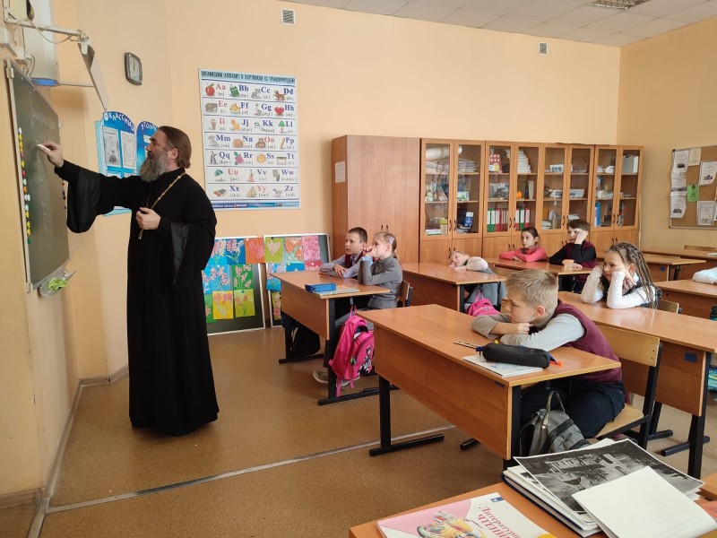 15 февраля 2023 года - день православной книги. По старому стилю это было 1 марта, день когда в 1564 году русский первопечатник Иван Федоров издал первую печатную книгу «Апостол» на Московском печатном дворе.   Иерей Александр Ткачев рассказал про «Свет под книжной обложкой». Отец Александр рассказал о том, что беря в руки книгу, люди обращаются лицом к истории своего государства, к истории и роли церкви в его становлении и развитии, к осознанию роли Веры как стержневой духовной основы отдельного человека и всего народа. А задача ещё более глубокая – повернуться лицом к своей душе, к душам родных и близких людей, к душам предков и к душе своего народа, почувствовать сопричастность и понять истинный и чистый смысл слова «Любовь». Самая читаемая в мире книга, являющаяся для христиан всего мира главнейшей – Библия. Мероприятие прошло в 3 "Б"  классе. Дети узнали про первую священную книгу и получили яркие эмоции от услышанного.