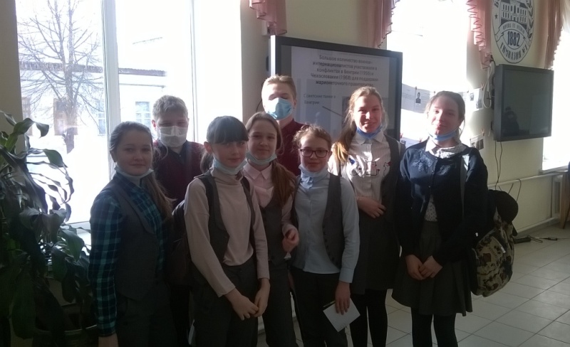 В рамках проекта «Воины  - интернационалисты – герои Отечества» обучающиеся 8 класса под руководством Голомазовой Ж.М. (кл. руководитель, учитель истории, обществознания и экономики) подготовили информацию о воинах – интернационалистах, оформив её в небольшую выставку, презентацию об интернациональных войнах и провели игру по станциям «Воины – интернационалисты – герои Отечества» продолжительностью 2 дня. Где ребятам 5-11 классов предлагалось пройти 7 станций (Пазл, Герои, Награды, Война, Звания, Кроссворд, Песни), успешно выполнить задания и пополнить свой багаж исторических  знаний.