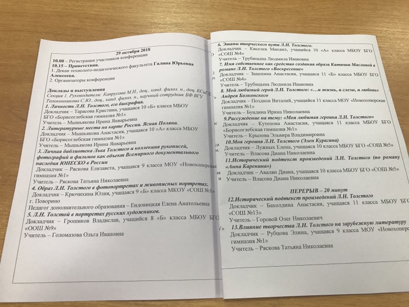 29 октября 2018г в Борисоглебском филиале ВГУ прошла региональная научно-практическая конференция студентов и школьников, посвящённая 190-летию со дня рождения великого русского писателя и философа Льва Николаевича Толстого.