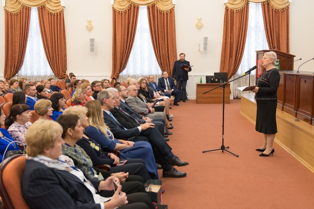 Открывая церемонию награждения, Министр образования и науки Российской Федерации О.Ю. Васильева поздравила учителей с профессиональным праздником – Днем учителя.