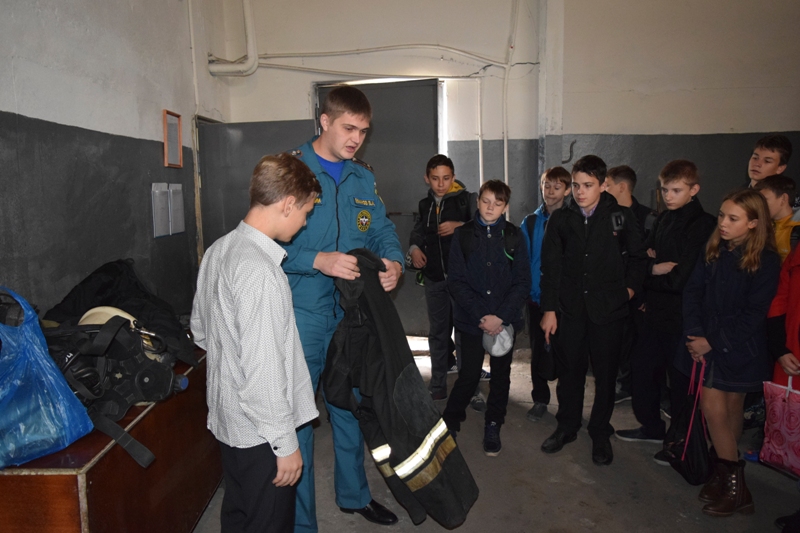 10 октября 7 класс МБОУ БГО «Борисоглебская гимназия №1» посетил с экскурсией Борисоглебскую пожарную часть №20. Обучающиеся с удовольствием познакомились с профессией пожарный. Увидели выставку пожарной техники примеряли костюм настоящего пожарника.