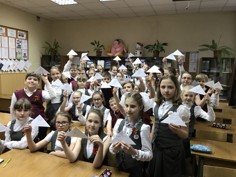Пятиклассники благодарят всех героев войны, тружеников тыла за чистое небо, за возможность жить на родной земле, говорить на родном языке, изучать родную историю и литературу, спокойно засыпать и с радостью просыпаться, заниматься любимым делом, радоваться жизни.