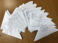 Александра Ивановна с радостью приняла букет майских тюльпанов и ирисов от 5 класса гимназии (правда, посетовала, что любит больше не сорванные, а живые, на клумбе, цветы), конфеты к чаю (Александра Ивановна - сладкоежка, по словам дочери) и самый дорогой подарок - письма пятиклассников, написанные ребятами накануне в рамках классного часа.