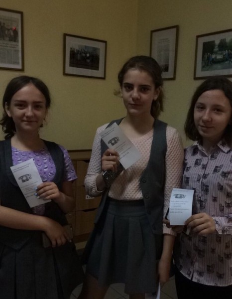 В гимназии прошла акция "Телефон доверия". Обучающиеся 8-х классов приняли активное участие, приготовили листовки и раздали их гимназистам.