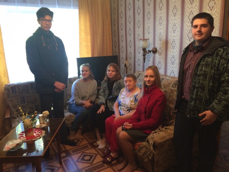 2 октября делегация из 10 класса посетила Сердюкову Зинаиду Николаевну, чтобы поздравить ее с Днем пожилого человека. Ребята подарили цветы, диск с советскими фильмами, поделки из природных материалов, фрукты. Зинаида Николаевна тепло встретила учеников гимназии. Она рассказала о своей жизни в школьные годы и о том, как живет сейчас.