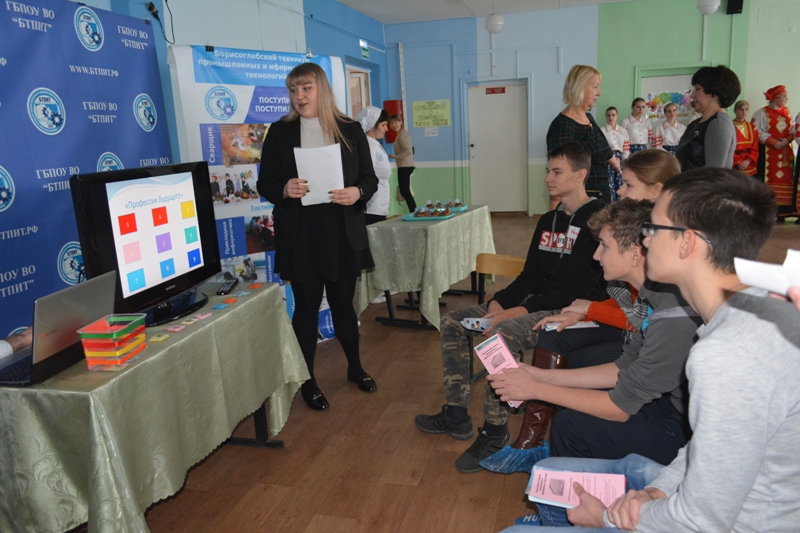 9 ноября обучающиеся 8-10 классов, родители  приняли участие в фестивале профессий.  Ребята и родители встретились  со специалистом  ГКУ ЦЗН, который  рассказал о потребности в кадрах на ближайшую перспективу (5 лет). Приняли участие в работе интерактивных площадок «Выбор будущего», «Навигатор поступления», «Высшее профессиональное образование - фундамент успеха», поучаствовали в дискуссии «Секреты успешной карьеры».