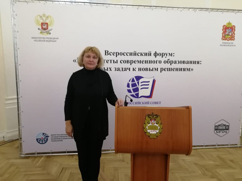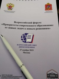 27 ноября 2019 в  г. Москва прошел Всероссийский форум "Приоритеты современного образования: от новых задач к новым решениям". Форум собрал 250 участников из 60 регионов, из которых  45 члены Всероссийского совета директоров. Воронежскую область на форуме представила Агаева Елена Олеговна, директор МБОУ БГО "Борисоглебская гимназия №1".
