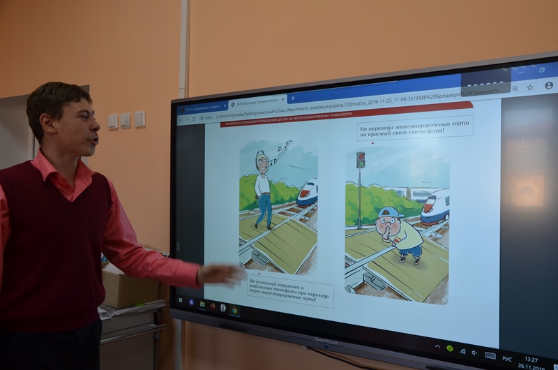 26 ноября 2019 г. в 8 "Б" классе в рамках месячника «Береги жизнь» был проведен классный час "Береги жизнь", направленный на профилактику и предупреждение транспортных происшествий с несовершеннолетними в зоне движения поездов. Гимназисты вспомнили правила безопасного поведения на железнодорожном транспорте.