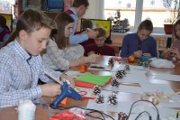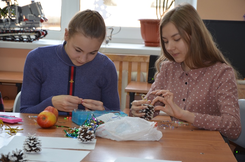 26 декабря 2019 г. в рамках классного часа обучающиеся 8 "Б" класса (классный руководитель Степаненко О.В.) приняли участие в мастерской Деда Мороза. В результате творческой работы были созданы новогодние игрушки - дизайнерские шишки для главной гимназической ёлки!