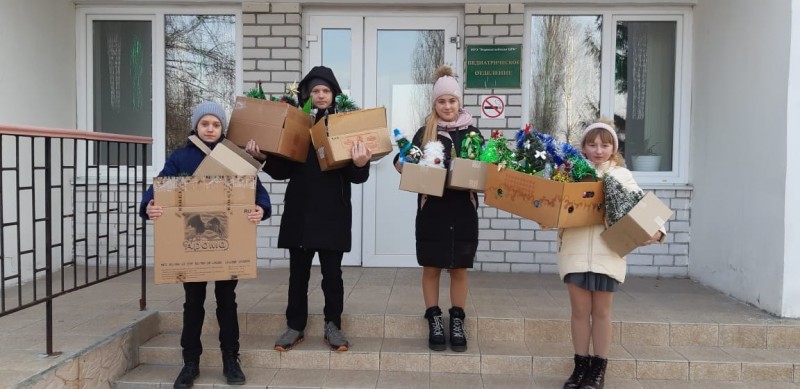 Традиционно в декабре  гимназисты и члены их семей активно включаются в настоящий марафон добрых дел! Уходящий 2019-ый не стал исключением! Ребята с 1 по 11 классы приняли участие в акциях "Крупинка Добра", "Подари радость детям", "Новый год для всех". Гимназисты 7 класса 25 декабря посетили Борисоглебскую детскую больницу и передали новогодние сувениры, сделанные руками школьников, малышам, оказавшимся накануне Нового года в больничных палатах. Творить ДОБРО значит дарить СЧАСТЬЕ и РАДОСТЬ людям!