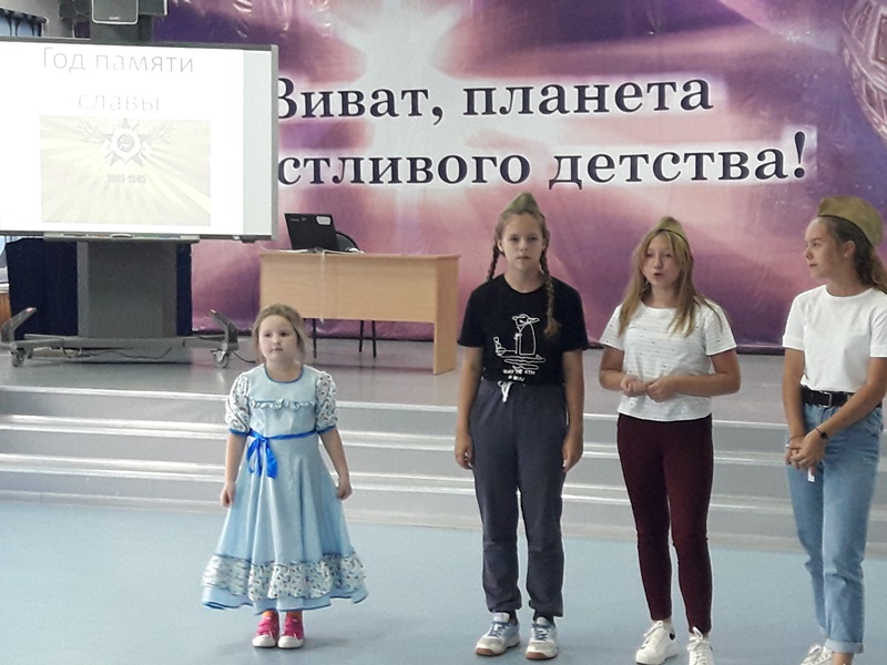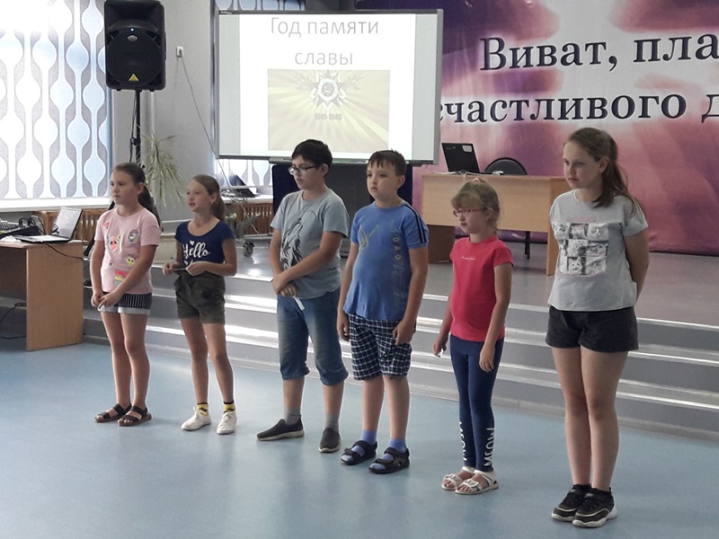 Мероприятия на восьмой  день программы лагеря с дневной формой пребывания детей  были посвящены  году памяти и славы и 75- летию Победы в Великой Отечественной войне 1941—1945 гг..Состоялась викторина, в которой все вопросы  имели отношение к юбилею победы. Во время  линейки «Памяти павших будьте достойны!» участники лагеря прочитали стихи о мире, Родине  и спели военные песни.