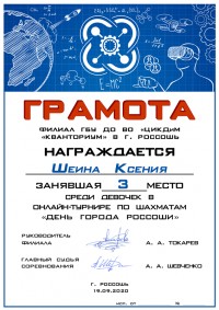 В школьном онлайн-турнире по шахматам в честь Дня города Россоши 19 сентября  2020 года приняли участие 45 шахматистов из Россоши, Кантемировки, Борисоглебска, Нововоронежа, Воронежа, Новобелокатая (Башкортостан). МБОУ БГО "Борисоглебская гимназия № 1" в турнире представвляла команда из 4 обучающихся. Подробнее>>