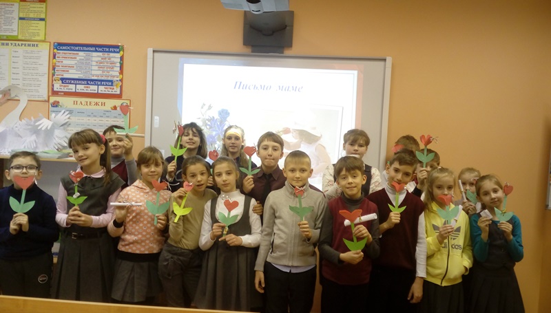 24 ноября 2020 года в 4 «Б» классе состоялся классный  час «Письмо маме». Мероприятие началось с показа видео притчи «Разговор ребенка с Богом», ведь самое прекрасное слово на земле – мама. Это первое слово, которое произносит человек, и звучит оно на всех языках одинаково нежно. Ребята познакомились с том, что в России праздник День матери учреждён в 1998 году. В разных странах этот день приходится на разные даты, в основном в мире «День матери» отмечается во второе воскресенье мая. День матери в России отмечается ежегодно в последнее воскресенье ноября. Цель праздника — поддержать традиции бережного отношения к женщине, закрепить семейные устои, особо отметить значение в нашей жизни главного человека — Матери. По окончанию просмотра обучающиеся написали письма для своих мам и изготовили открытки - поздравления.
