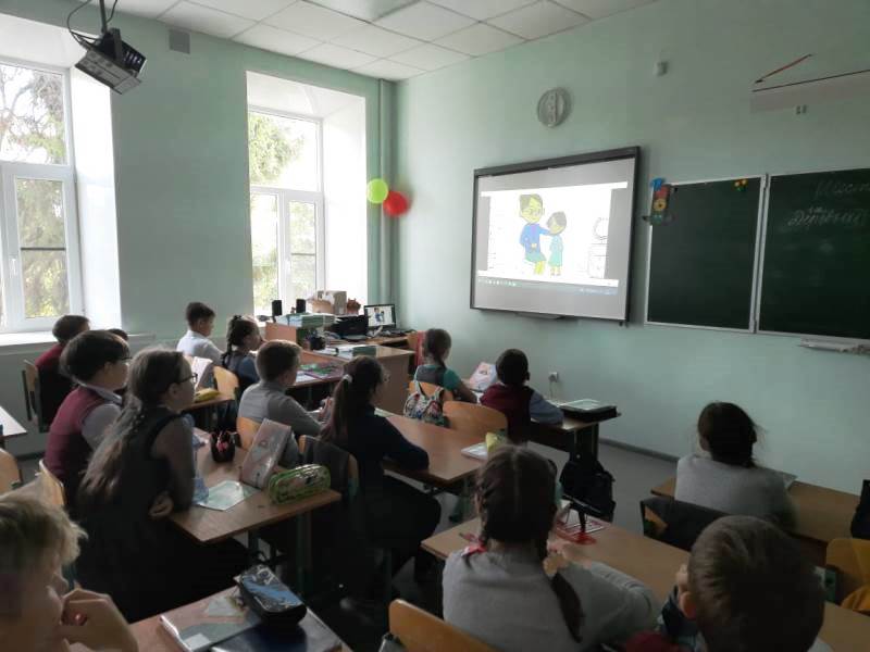 На информационной минутке безопасности классный руководитель 4 класса Негадова О.П.  рассказала ребятам об  отрицательном отношении к проявлениям насилия среди сверстников и  умению противостоять им. Ребята посмотрели видео «Осторожно, незнакомец!». Обсудили, что в жизни перемешаны добро и зло, честь и предательство, гуманность и жестокость, насилие и любовь. Гимназисты постарались наметить ориентиры, которые помогут им разграничить данные понятия и выбрать для себя правильную дорогу.