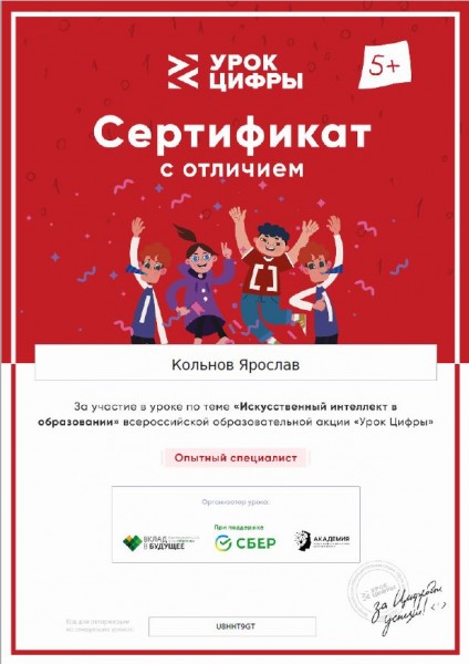 30 сентября 2021 г. обучающиеся 7 класса (учитель информатики Степаненко О.В.) приняли участие во всероссийском образовательном проекте в сфере информационных технологий "УРОК ЦИФРЫ" по теме "Искусственный интеллект в образовании".