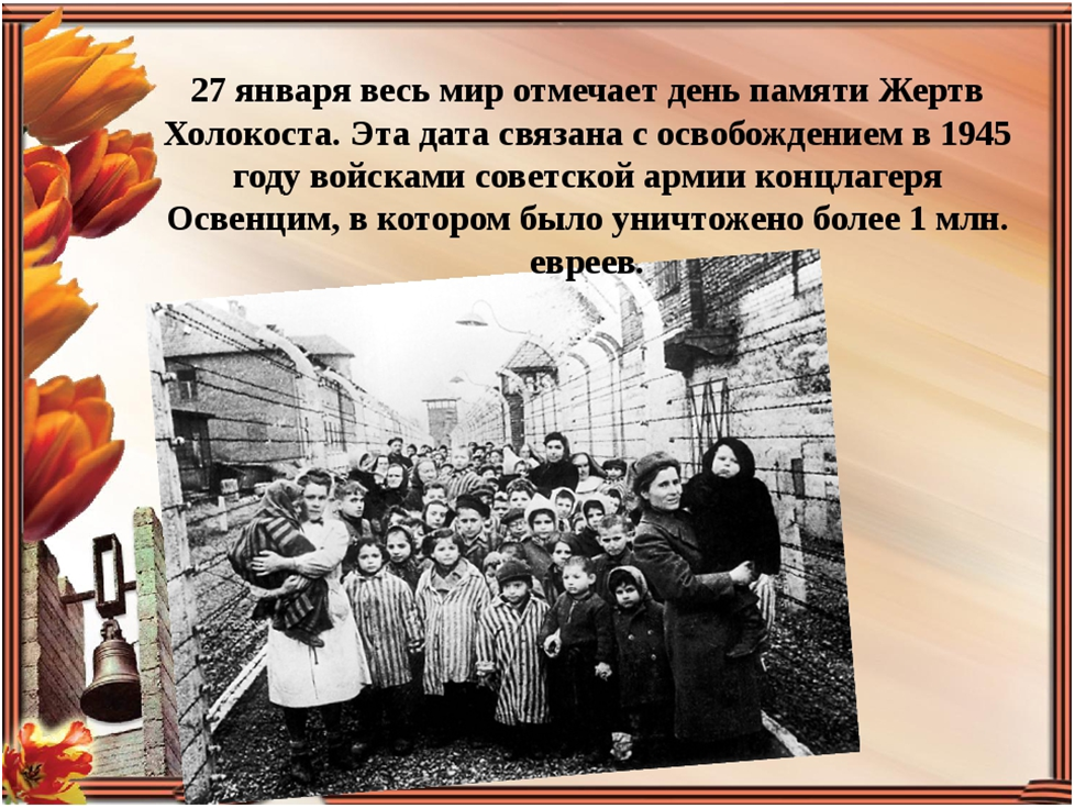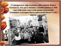 Гимназисты вспомнили историю освобождения города Воронежа, узнали жуткую историю холокоста и  историю освобождения заключенных из самого крупного среди фашистских концентрационных лагерей - Освенцима, поделились впечатлениями от просмотра художественного фильма «Мальчик в полосатой пижаме» (2008г., реж.Марк Херман).