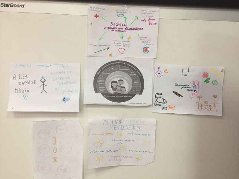 В ходе классного часа в микрогруппах выпускники обсуждали факторы укрепления общественного здоровья и определяли  особенности внешних и внутренних факторов. По итогам обсуждения был создан кластер.