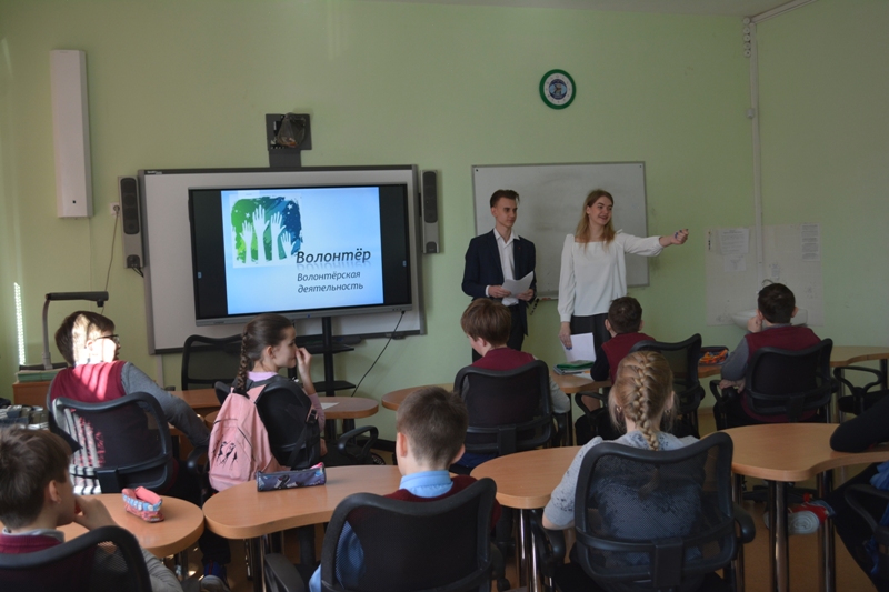 8 апреля 2022 г.  Зайцева Юлия и Труфанов Артем, обучающиеся 11 класса  рассказали  5б классу о волонтерской деятельности. В рамках урока ребята узнали кто такие волонтеры, рассмотрели  основные направления  волонтерской деятельности, поделились опытом участия  в добровольческих акциях  и мероприятиях,  размышляли  о логотипе волонтерского отряда.
