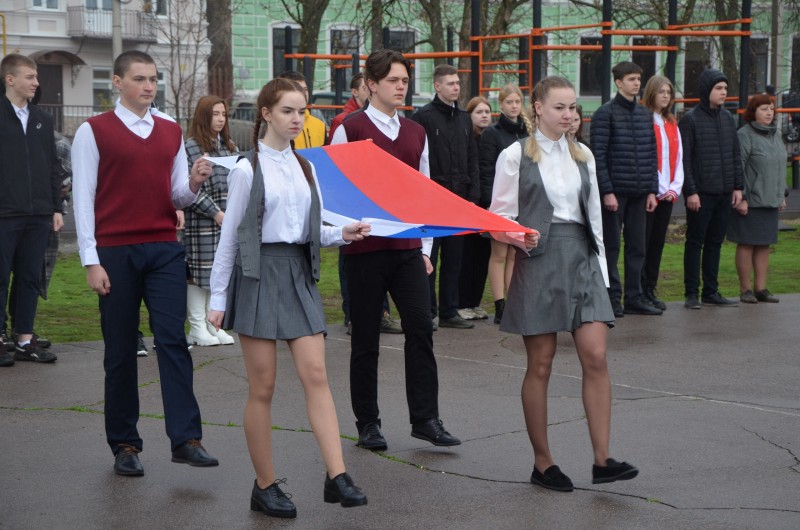 Церемонией выноса и поднятия государственного флага РФ 18.04.2022 начались занятия для обучающихся 9-11-х классов в МБОУ БГО "Борисоглебская гимназия № 1".