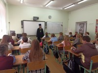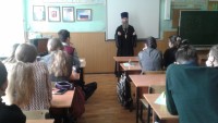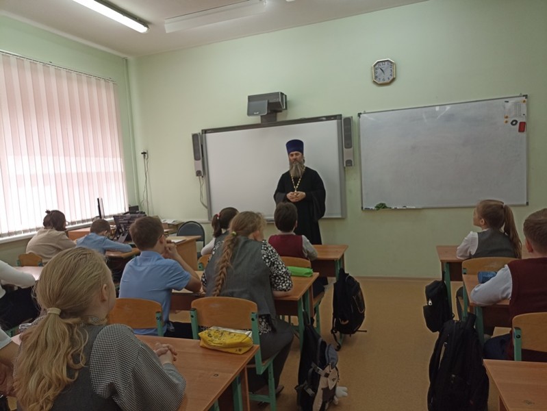 В настоящее время в рамках патриотического воспитания возобновляется сотрудничество государства и православной Церкви. «Воспитание через традиции – это социальный приоритет". В связи с этим была организована встреча обучающихся 6 класса ( классный руководитель Павлова Е. С.) с настоятелем храма Бориса и Глеба отцом Александром, который побеседовал с детьми на разные темы: военная операция на Украине, великие русские люди, роль образования в жизни.