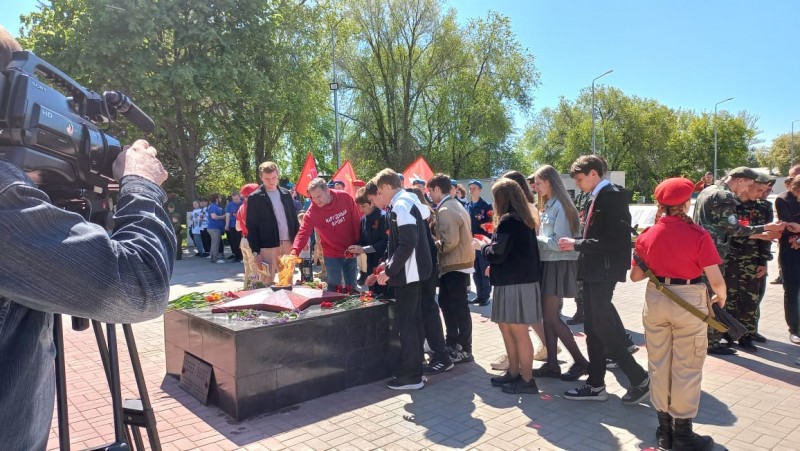 В завершении все участники возложили цветы и свечи с Огнем Памяти к Вечному огню, почтив память всех борисоглебцев и жителей нашей страны, погибших на фронтах войны.