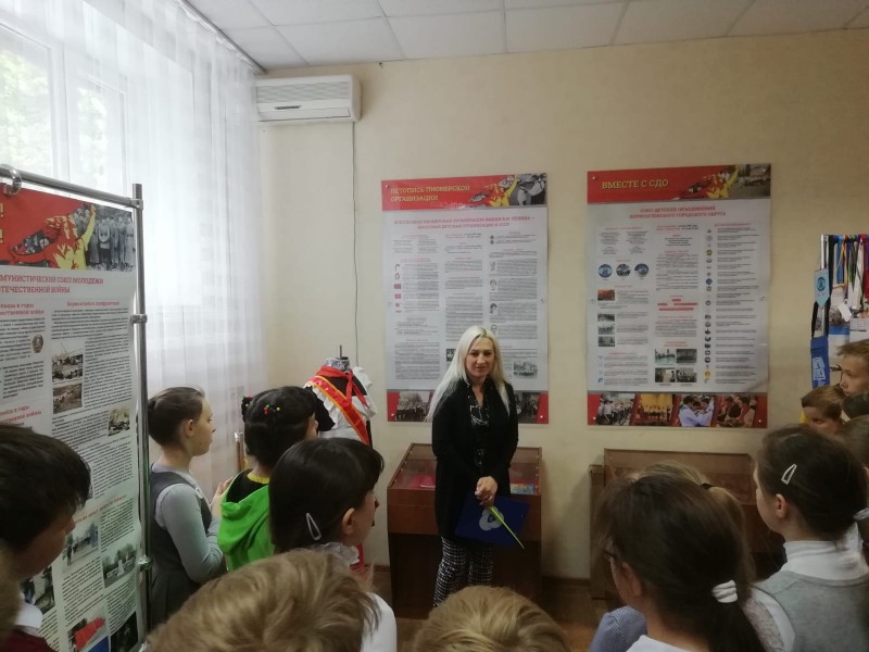 25 мая 2022 г. ребята 4 класса вместе с классным руководителем Негадовой О.П. и зам. директора по УВР Степаненко О.В. посетили музей в МБОУ ДО БГО Центр «САМ». Детям рассказали об истории  пионерского движения в СССР,  деятельности РДШ. Гимназисты узнали о направлениях  и о том, что каждое из четырех основных направлений деятельности РДШ - военно-патриотическое, информационно-медийное, личностное развитие и гражданская активность имеет свой символ.  В музее проведена серьёзная работа по сбору материала об истории детского движения.  Обнаруженные документы, фотоматериалы пробудили интерес у детей  к истории становления пионерской организации, вызвали желание пополнить свои знания новыми фактами.