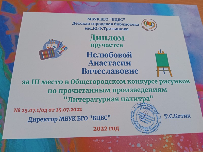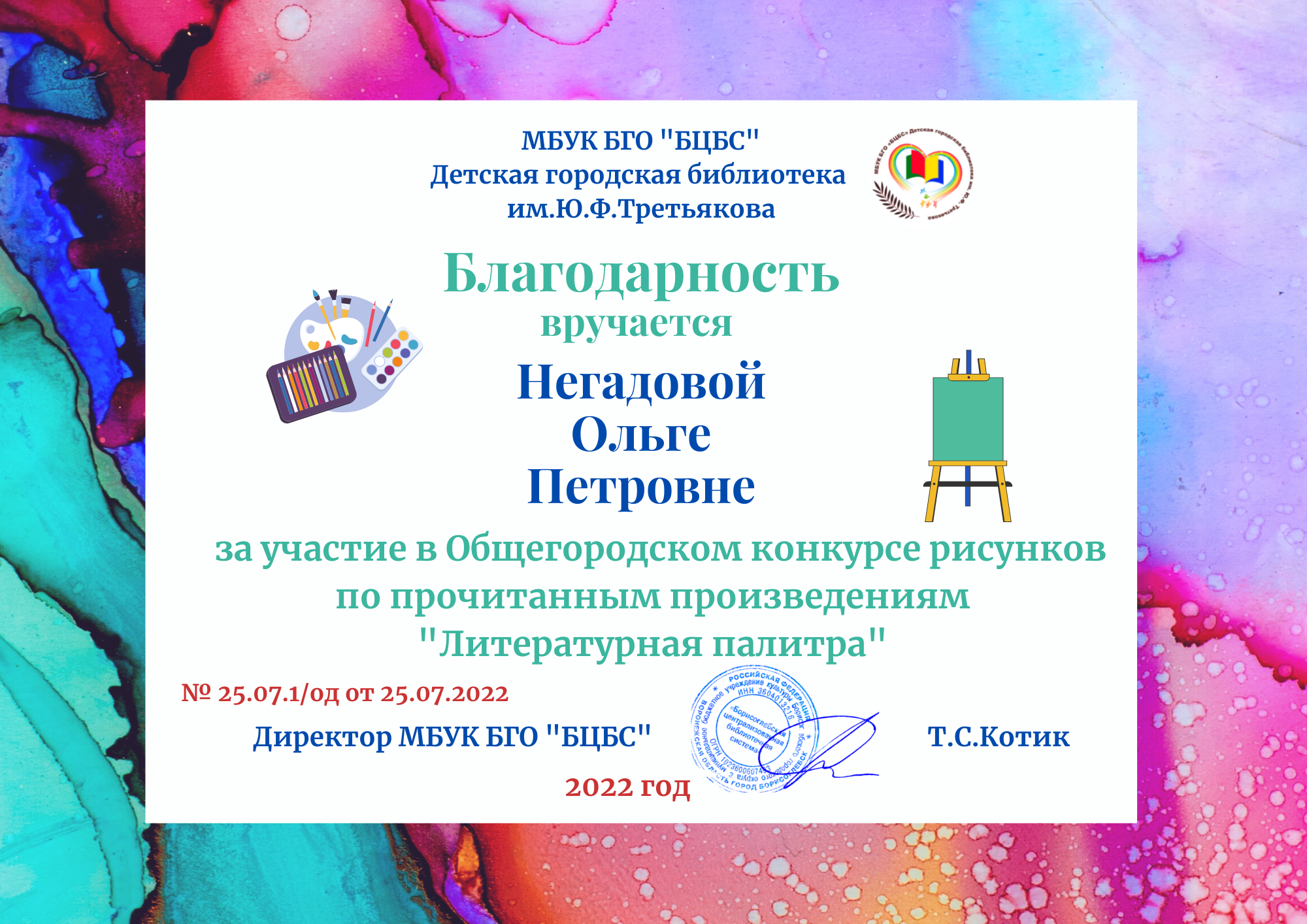 Завершился  общегородской конкурс  рисунков по прочитанным произведениям «Литературная палитра», проводимый МБУК БГО «БЦБС»  Детская городская библиотека им. Ю.Ф. Третьякова.