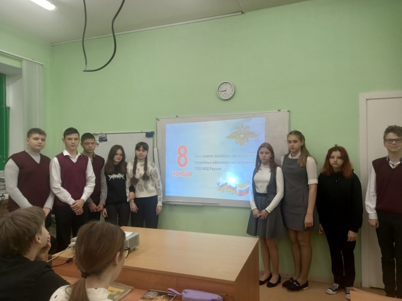 Для обучающихся 4, 6, 8 классов МБОУ БГО "Борисоглебская гимназия №1" советник директора по воспитанию Карагулакова А.Х провела уроки мужества в честь дня памяти сотрудников органов внутренних дел РФ, погибших при выполнении служебных обязанностей с демонстрацией видеоролика на песню "Прощаться не будем", подготовленного Культурным центром ГУ МВД России по Воронежской области.