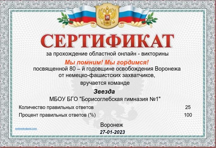 27 января 2022 г. состоялась областная онлайн - викторина "Мы помним! Мы гордимся!", посвященная 80-й годовщине освобождения Воронежа от немецко - фашистских захватчиков.