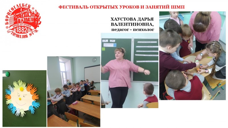 Первой представила свой опыт наш психолог Хаустова Д.В. с игровым занятием для 1 класса "Общаемся играя".
