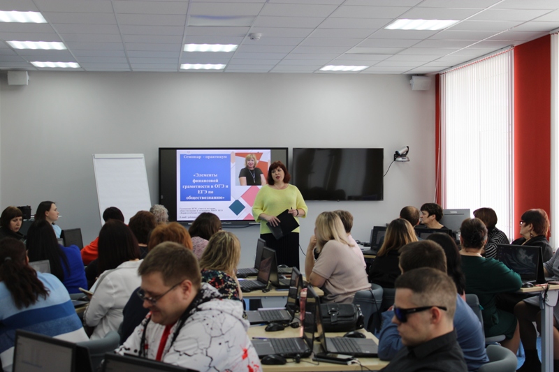 28.03.2023 на базе обособленного подразделения ВИРО им. Н.Ф. Бунакова в Борисоглебском городском округе Воронежской области Голомазова Жанна Михайловна, учитель истории, обществознания и экономики провела для коллег Семинар - практикум "элементы финансовой грамотности в огэ и егэ по обществознанию".