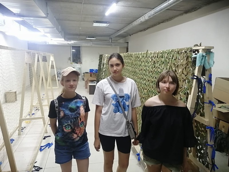 Ученицы 6 «В» класса вместе с классным руководителем Волховым Александром Юрьевичем не остались равнодушными к нуждам наших защитников и присоединились к волонтерской деятельности по изготовления маскировочных сетей для участников СВО. Это не первый наш опыт вязания. На летних каникулах девчонки вместе с друзьями приходили в магазин «Апрель» и помогали сначала натягивать сети, а потом и  преображать их камуфляжем… Своим поступком ребята показывают, что это наше общее дело!