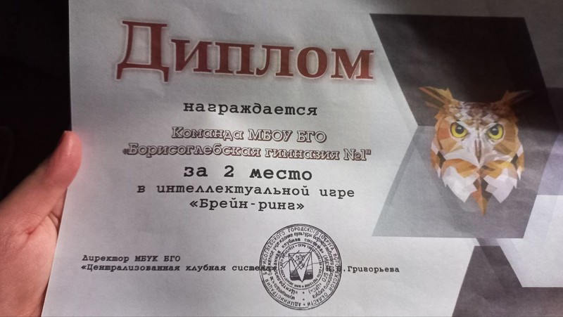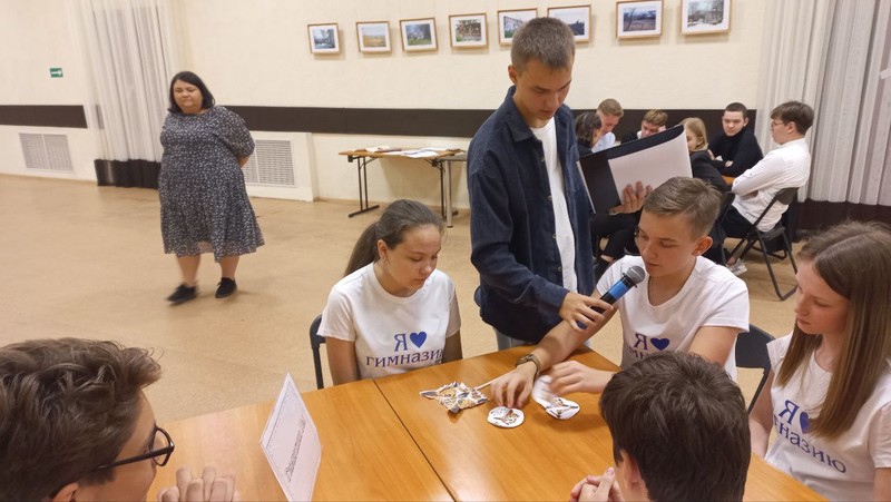 29 сентября 2023 г. в ЦДК "Звездный" состоялась муниципальная интеллектуальная игра "Брейн-ринг". Команда гимназистов 8-10 классов: Ельчанинова У., Жданкин Ф., Окунев М. - обучающиеся 8 "А" класса, Тарасова П., Захаров М., Чапоров Д. - обучающиеся 9 "А" класса, Барскова С., Барсков Ю., Зубенко И., Кутепов А., Преснякова Д., Чернышова А., Гутман Д. - обучающиеся 10 класса (руководитель: Громова Т.С.) в двух раундах уступила 1 балл и стала призером!