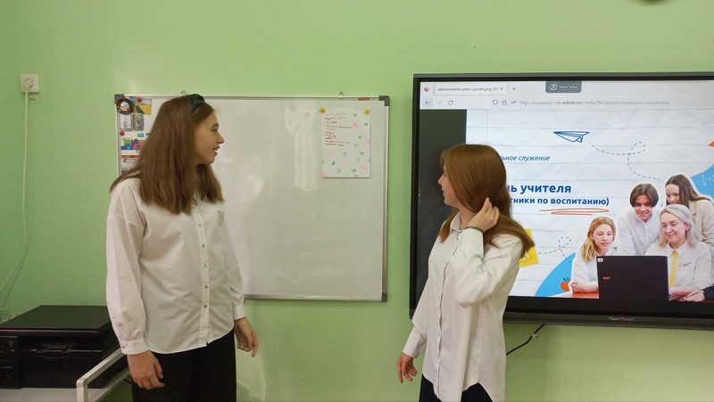 В преддверии Всемирного Дня учителя внеурочное занятие курса "Разговоры о важном" было посвящено нашим учителям. Гимназисты 9 "А" класса поиграли в парах, попробовали себя в роли учителя, подготовили поздравительные листовки.