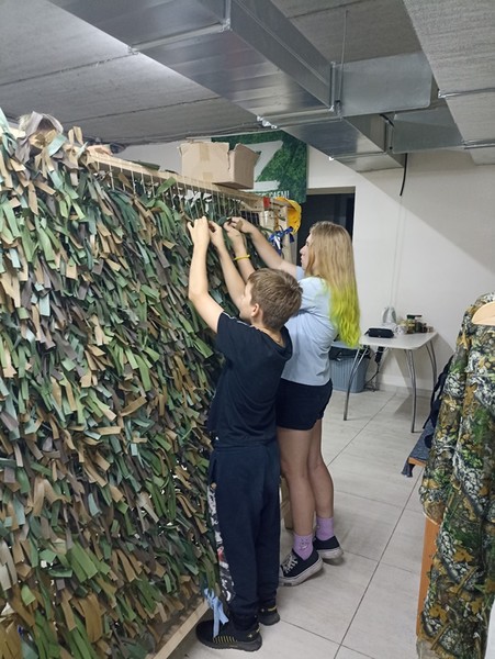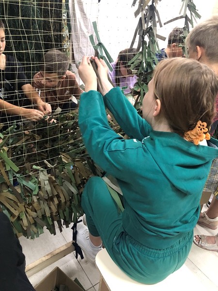 Ученики 5 "А" класса вместе с классным руководителем Батищевой Дарьей Игоревной присоединились к волонтерской деятельности по изготовлению маскировочных сетей для участников СВО.В мастерской не кистями и красками, а прочным лентами рисуется камуфляжное полотно. В каждую ячейку маскировочной сетки вплетается доброта и забота. Поможем все вместе бойцам СВО.
