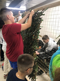 30 августа 2023 года ученики 8В класса (классный руководитель - Плотникова Т.В.) внесли свой вклад в помощь нашим военнослужащим. Ребята плели для участников СВО маскировочные сети. Работа не сложная, но трудоемкая. Все вместе дети и педагоги делают доброе и большое дело.