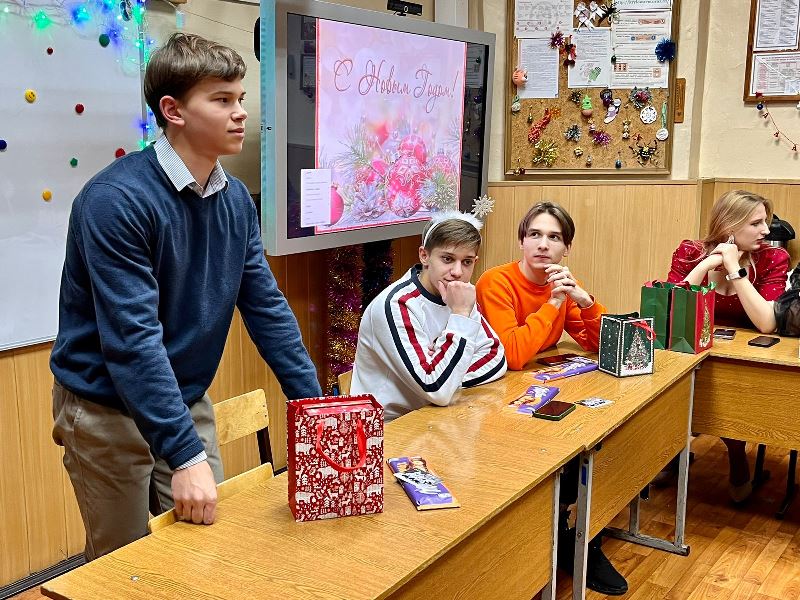 28 декабря 2023 г. в 11 классе состоялся традиционный «Новогодний огонёк», на котором ребята в увлекательной форме поздравили друг друга с успешным окончанием 1 полугодия 2023-2024 уч.года и пожелали в наступающем 2024-м всего самого хорошего! Целых три часа для ребят пролетели в родном кабинете незаметно, потому что этот школьный новогодний вечер в их школьной жизни был последним… Потому на «огонёк» и пришли полным составом, потому и смеялись дольше и громче обычного, потому и поздравления были теплее и проникновеннее…