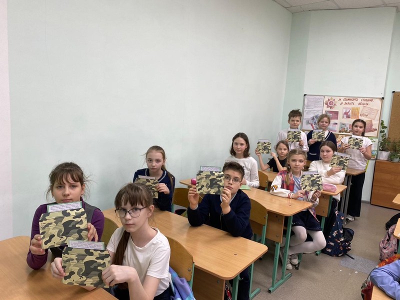 Поэтому 2 "А" класс (классный руководитель Негадова Ольга Петровна) и 4 "А" (классный руководитель Егорова Ирина Александровна) присоединились к Всероссийской акции "Мы рядом" и написали письма со словами поддержки для военнослужащих Вооруженных Сил Российской Федерации – участников специальной военной операции.