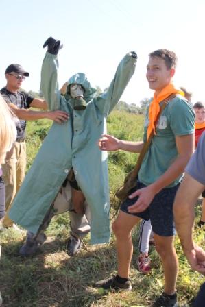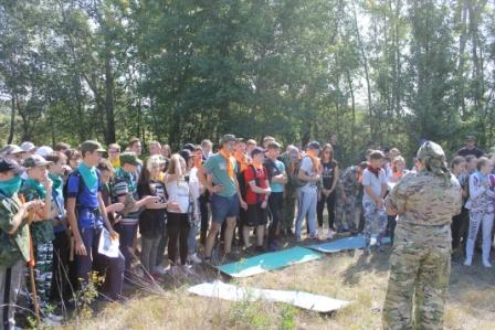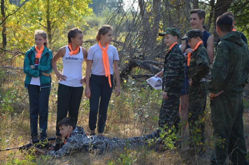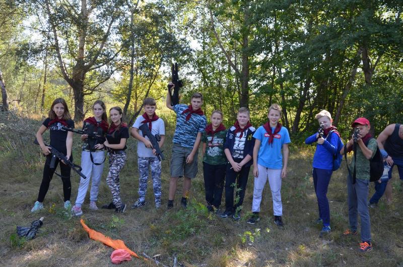 На войне как на войне… 8 сентября 2018 г. уже в третий раз на пойменном лугу р.Ворона прошла военно-спортивная игра «Ни шагу назад!».  В жаркий день сошлись в жарком сражении отряды 7 «Б», 8 и 10 «А» и «Б» классов, жаждущие победы. Сборка-разборка автомата (пункт «Матчасть), перевязка и переноска раненых на военных носилках (а когда носилки заняты, то прямо на плече) (пункт «Госпиталь), прохождение полосы препятствий всем отрядом (Пункт «Разведка»), составление рассказов о Героях Советского Союза – наших земляках (Пункт «Военные корреспонденты»), бег по пересеченной местности в противогазах, одевание костюма химзащиты на время (пункт «Атака! Газы!»), метание гранат в макет танка (пункт «Танк») – это и многое другое входило в программу образовательного события. Пункт «Снайперы» на обширной поляне обеспечили члены тактического клуба “Laser-Troid”, которые снабдили гимназистов лазерными пистолетами и винтовками, а для победителей провели стратегическую игру на местности с использованием почти «настоящего» оружия! Конечный пункт игры «Привал», на котором каждый игрок получил типичный солдатский обед - вкуснейшую гречневую кашу с тушенкой, чай и потрясающие блины! Ни шагу назад не сделали, и Победа осталась за нами! Довольны остались и  организаторы образовательного события Авраменко В.Я., Голомазова Ж.М., Жиляев А.Е., Мамыш-Оглы Р.Х., Мячина С.А., Степаненко О.В., Ушкова О.Г., и энтузиасты-родители, некоторые из которых принимают участие в игре уже третий раз! Спасибо всем за удивительный по эмоциям день!