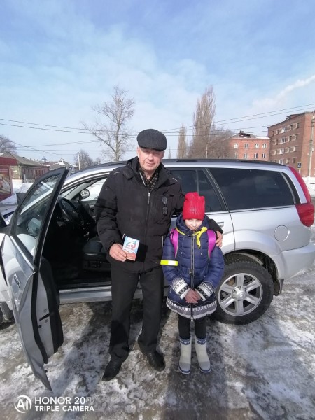 Накануне  праздника дня защитника Отечества ученики 4 «Б»  класса МБОУ БГО "Борисоглебская гимназия № 1" под руководство классного руководителя Сысовской Елены Алексеевны, совместно с инспектором по пропаганде безопасности дорожного движения ОГИБДД ОМВД России по городу Борисоглебску Семеновой Ольгой Александровной, поздравили мужчин водителей и пешеходов с наступающим праздником  23 февраля. Напомнили им о необходимости соблюдать правила дорожного движения. Ребята подарили открытки и цветы подъезжающим к гимназии водителям и проходящим мимо пешеходам. Всем участникам акции мы желаем всего самого наилучшего и удачи на дорогах!