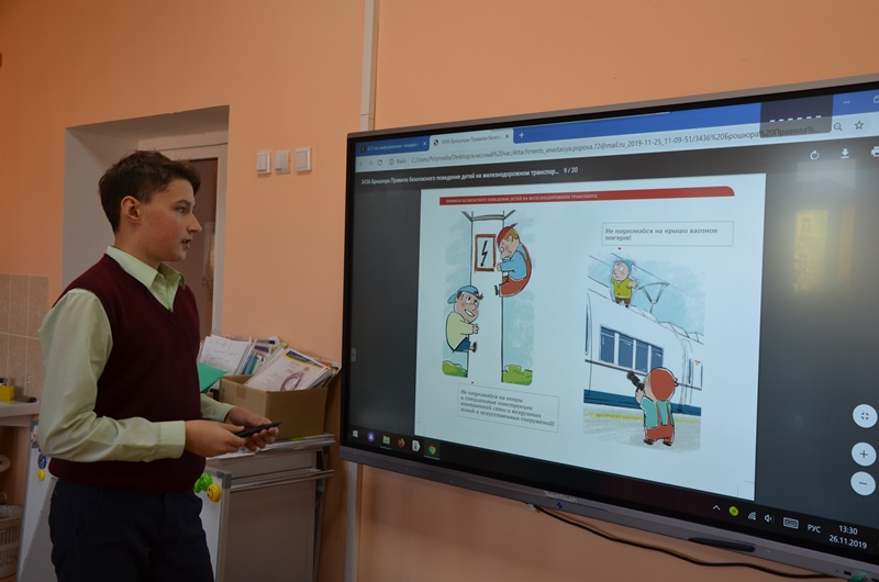26 ноября 2019 г. в 8 "Б" классе в рамках месячника «Береги жизнь» был проведен классный час "Береги жизнь", направленный на профилактику и предупреждение транспортных происшествий с несовершеннолетними в зоне движения поездов. Гимназисты вспомнили правила безопасного поведения на железнодорожном транспорте.