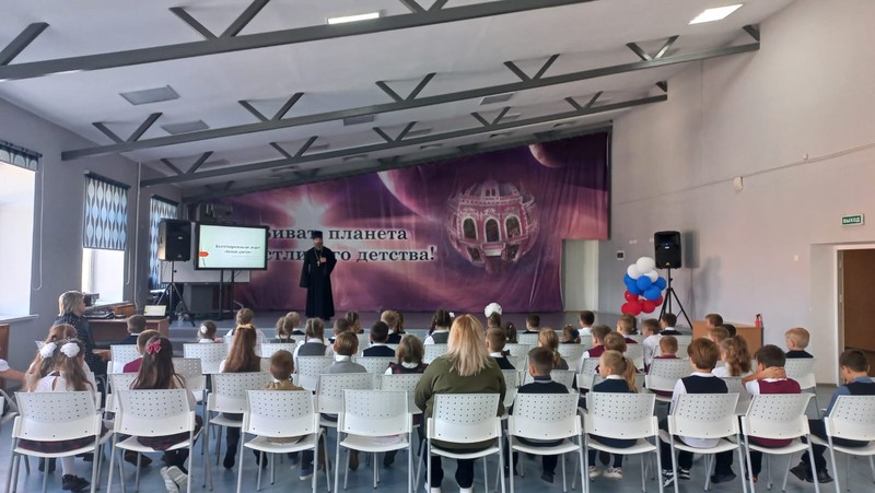 Символом акции является белый цветок. Трогательные белоснежные лепестки цветов объединяют всех, кто не может оставаться равнодушным к чужой боли. В рамках акции в гимназии проходили «Уроки доброты», на которых выступил о. Александр и рассказал ребятам  о милосердии и сострадании, о том, что каждый человек, вне зависимости от возраста и материального положения, может помочь ближнему, которому в этот момент больно, одиноко и тяжело.