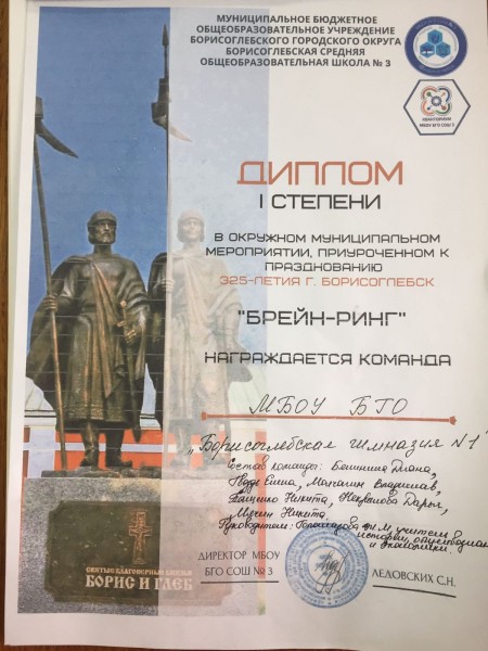 31.03.2023 года состоялось интересное интеллектуальное состязание в МБОУ СОШ №3 "Брейн - ринг", посвященный 325 - летию Борисоглебска. Порой, увлекаясь глобальными историческими процессами, мы не обращаем внимания на историю родного края, а она очень интересна, насыщена и НАМ ЕСТЬ ЧЕМ ГОРДИТЬСЯ!!!!
