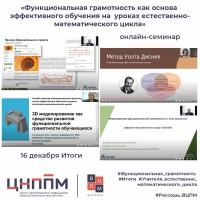 16 декабря 2021 г. на платформе Россошанского филиала ВЦПМ состоялся онлайн-семинар «Функциональная грамотность как основа эффективного обучения на уроках естественно-математического цикла». В онлайн-семинаре приняли участие учителя естественно-математического цикла.