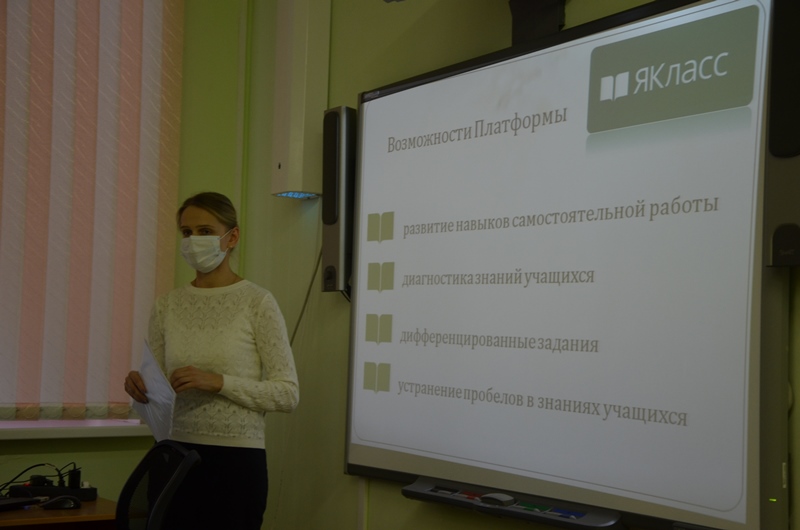 16 декабря 2020 года в методический день первым опытом использования платформы Яклассс с коллегами поделились Федорова Л.С., учитель математики, Мишина В.В., учитель английского языка, Бурашникова Н.П., педагог-библиотекарь. Акцент выступлений коллег был  сделан на изучении теории на платформе Якласс, повторении и устранении пробелов в знаниях обучающихся, дифференциации заданий через Якласс.