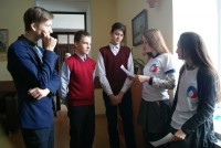 Гимназисты должны были собрать команду из 5 человек, получить маршрутный лист, найти на территории школы  человека в футболке РДШ, выполнить его  задание и получить баллы за правильные ответы.