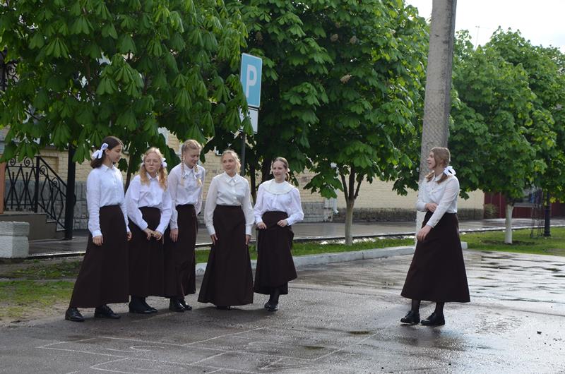 Ближе к вечеру в уже ставшей традиционной исторической  реконструкции «На Дворянской» приняла участие группа обучающихся  10 класса (зам.директора по УВР Степаненко О.В.).