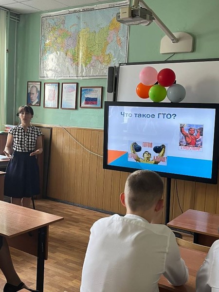 В этом учебном году 11 класс в стенах родной гимназии встречает День знаний в последний раз. 2 сентября, после торжественной линейки, ребята собрались в своем уютном кабинете на классный час "ГТО: возрождение традиций". Послушав поздравления с началом нового учебного года от классного руководителя Золотухиной Е.И. и учителя математики Солодковой Н.В. (Наталия Владимировна была гостем на классном часе), одиннадцатиклассники вспомнили, что ГТО - это программа физкультурной подготовки в общеобразовательных школах. Существовала эта программа с 1931 по 1991 год, а с 2010 года начала своё возрождение. Так, по Указу Президента РФ В.В. Путина с 1 сентября 2014 года в нашей стране был введен Всероссийский физкультурно-спортивный комплекс "Готов к труду и обороне". Выпускники подробнее познакомились со ступенями ГТО, нормативами, особенностями их сдачи, ответили на вопросы викторины и пришли к выводу, что ГТО - это путь к здоровью!