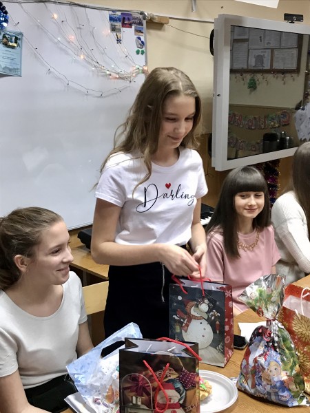 А ещё слова пожелания в конце встречи сменили песни под гитару (аккомпанировал классу Кучкурда Максим) и новогодняя музыкальная композиция, исполненная на синтезаторе Окуневой Алёной.