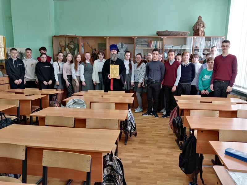 Что формирует у подростков моральные устои и жизненные убеждения? Конечно же, совместная работа учителей, родителей и священнослужителей по развитию высших нравственных ценностей. 10 марта 2022 г. гостем классного часа в 8 классе  (классный руководитель Золотухина Е.И.) стал настоятель храма Бориса и Глеба отец Александр. Он рассказал о создании первой печатной книги "Апостол". Это самая старая сохранившаяся богослужебная книга, отпечатанная Иваном Фёдоровым в 1574 году.  Также восьмиклассники посмотрели документальный фильм о святителе Митрофане Воронежском, епископе русской церкви, причисленном к лику святых, являющимся покровителем Воронежской земли.  Ребята поблагодарили отца Александра за интересный, познавательный и важный урок.